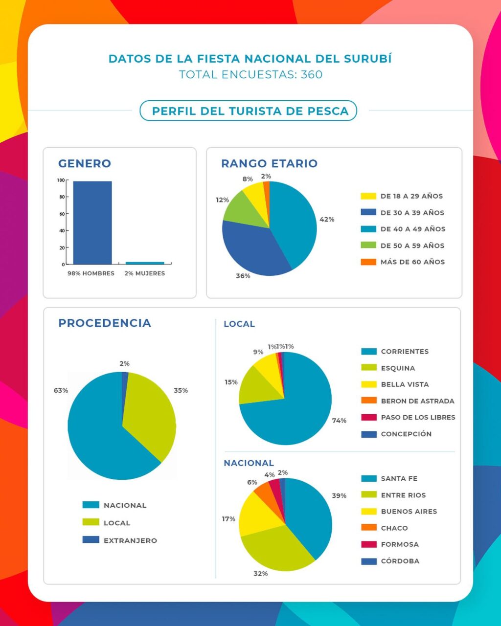 Los datos suministrados provienen de encuestas que se llevaron a cabo durante los días en que se desarrolló la Fiesta Nacional del Surubí, con un público objetivo delimitado por pescadores, o lo que el informe detalla como «Perfil del Turista de Pesca» entre los que se destacan el género, rango etario, procedencia, modalidad de viaje y más.