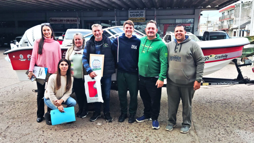 En este caso, ante integrantes de la Comisión Municipal de Pesca, el equipo 535 dela localidad de Villa del Rosario se acercó a las instalaciones de la Agencia Sheller y Cia para retirar su embarcación “GUAYCURÚ 520 OPEN” equipado con su motor Honda 60 HP 4T.