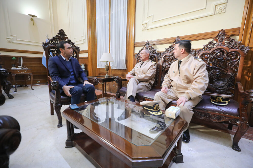 “A fines de dialogar sobre el trabajo institucional de la Pefectura Naval en aguas de la provincia en pos de la seguridad, el control y la prevención, recibí al director de la Región Norte, Germán Bonifacini, y al jefe de Prefectura Corrientes, Gustavo Griolio”, detalló el mandatario a través su cuenta oficial de X.