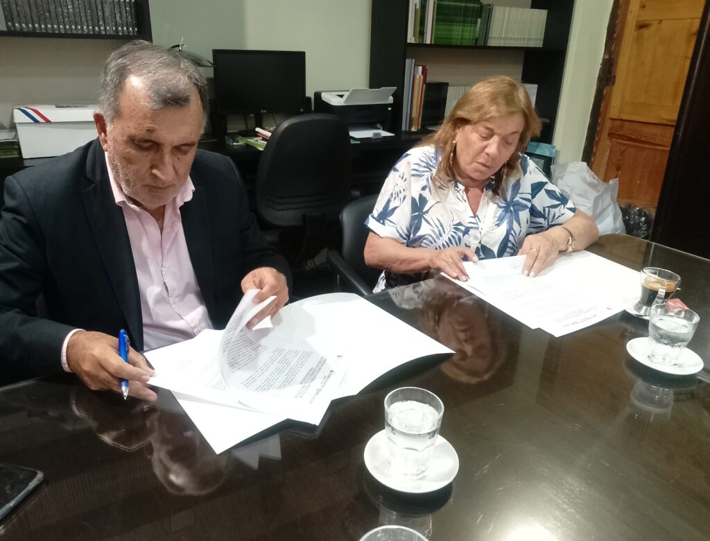 De la firma del presente acuerdo participaron Beatriz Kunin, presidenta del Instituto de Cultura de Corrientes, y Héctor López, interventor del Instituto de Previsión Social (IPS), acompañados de Leiza Centurión Olguin, asesora general del ente previsional.