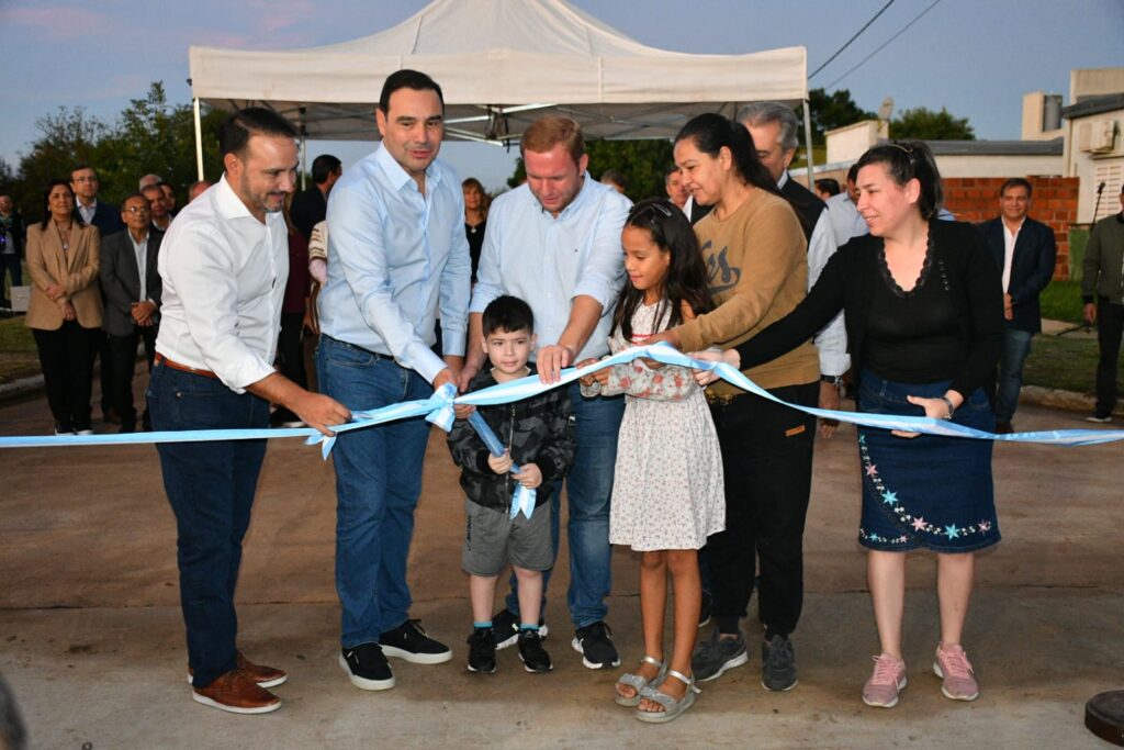 En primera instancia tuvo lugar la inauguración de la pavimentación con hormigón en el barrio 100 Viviendas. Allí Valdés destacó el valor de recuperar las capacidades del Estado para hacer obra pública, tanto en su dimensión provincial como municipal.